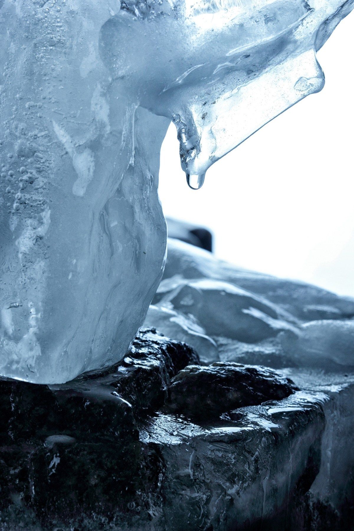 A beautifully chilled glass, with a slab-shaped ice cube, this glass of whiskey is about as tantalizing as it can be. We love the way the glass is staged on a rugged, ice covered rock, surrounded by shards of even more rugged chunks of ice. Ready for a drink?