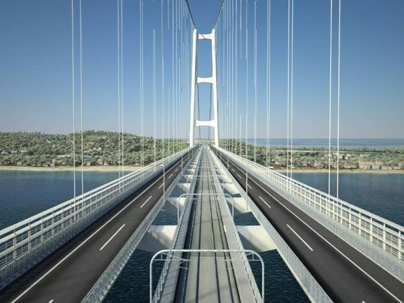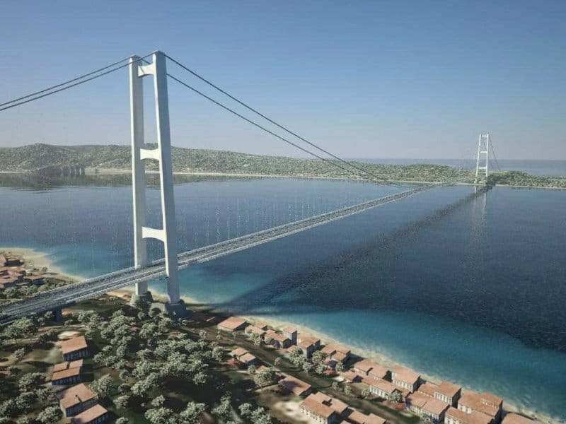 With a total length of about 3.7 km and a suspended span of 3.3 km, it will eclipse Turkey’s Çanakkale Bridge by a wide margin.